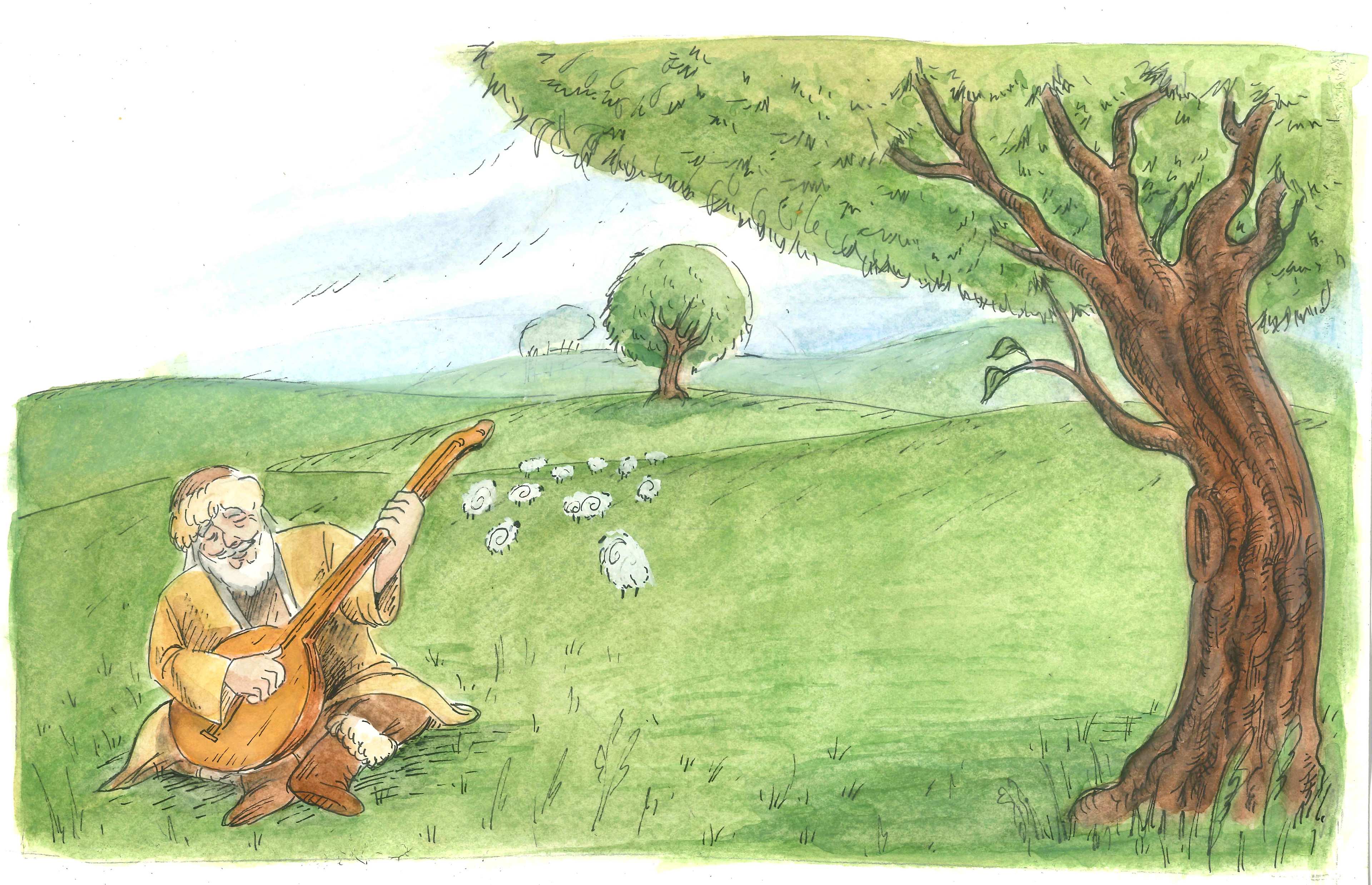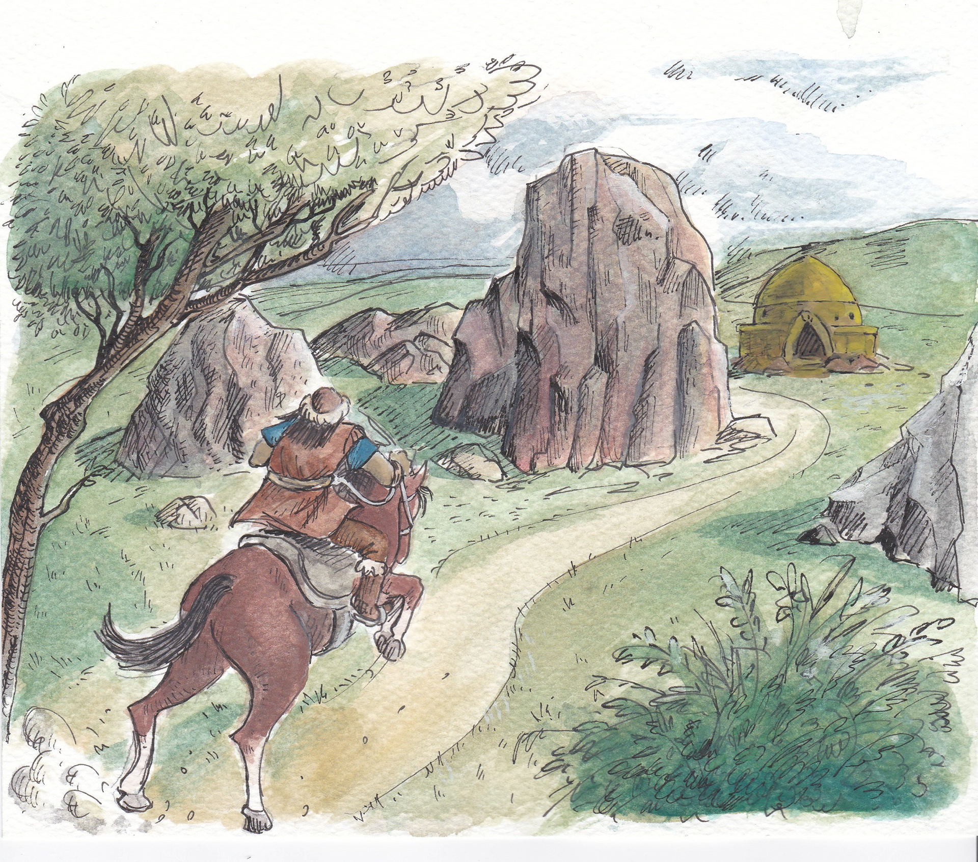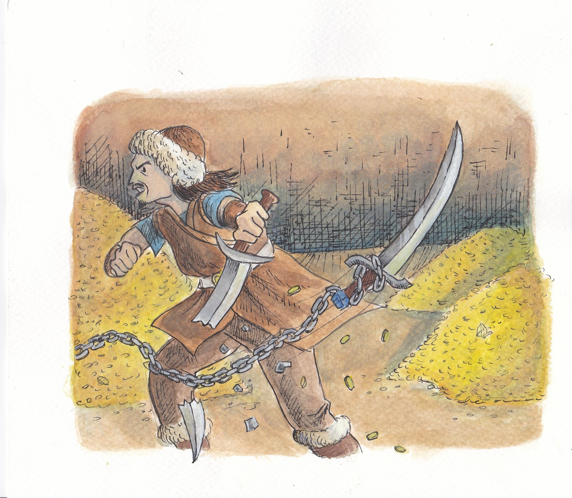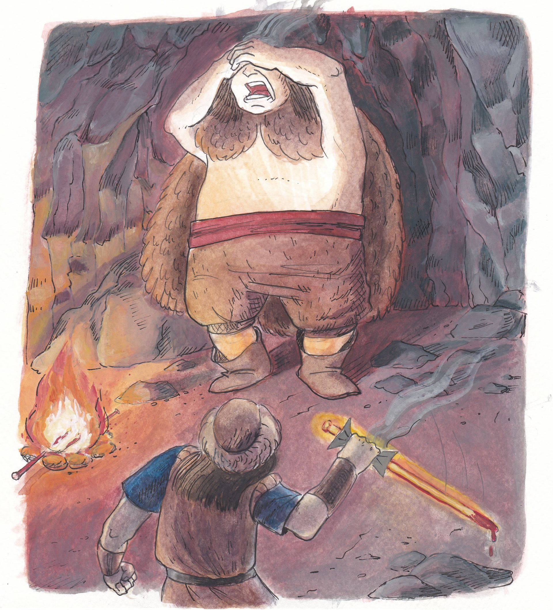 'Basat and Tepegoz(Basat and Google-eye)' watercolour and ink on paper, personal project