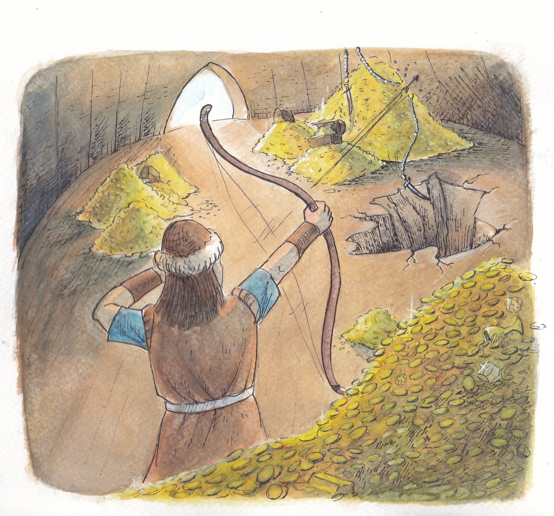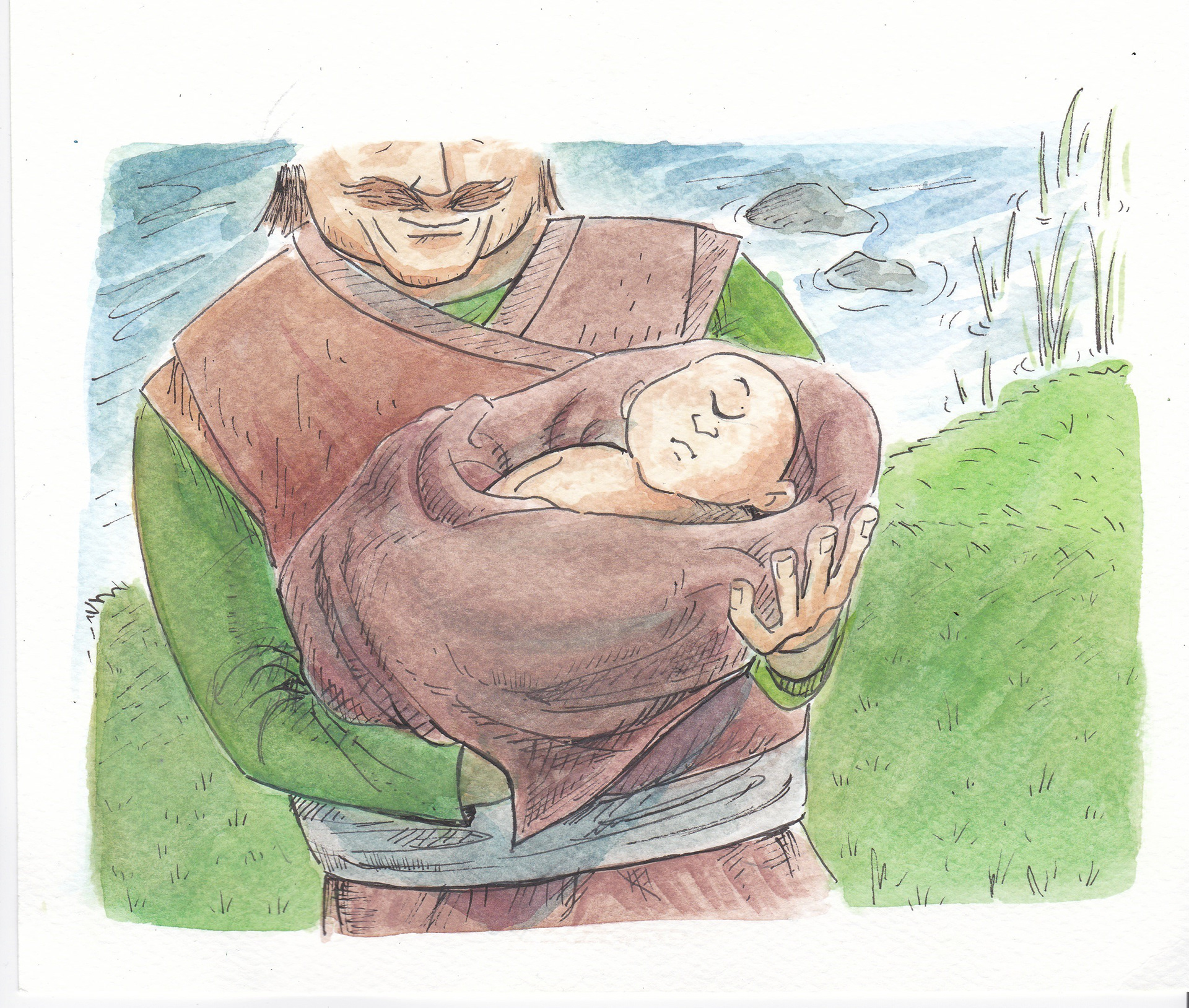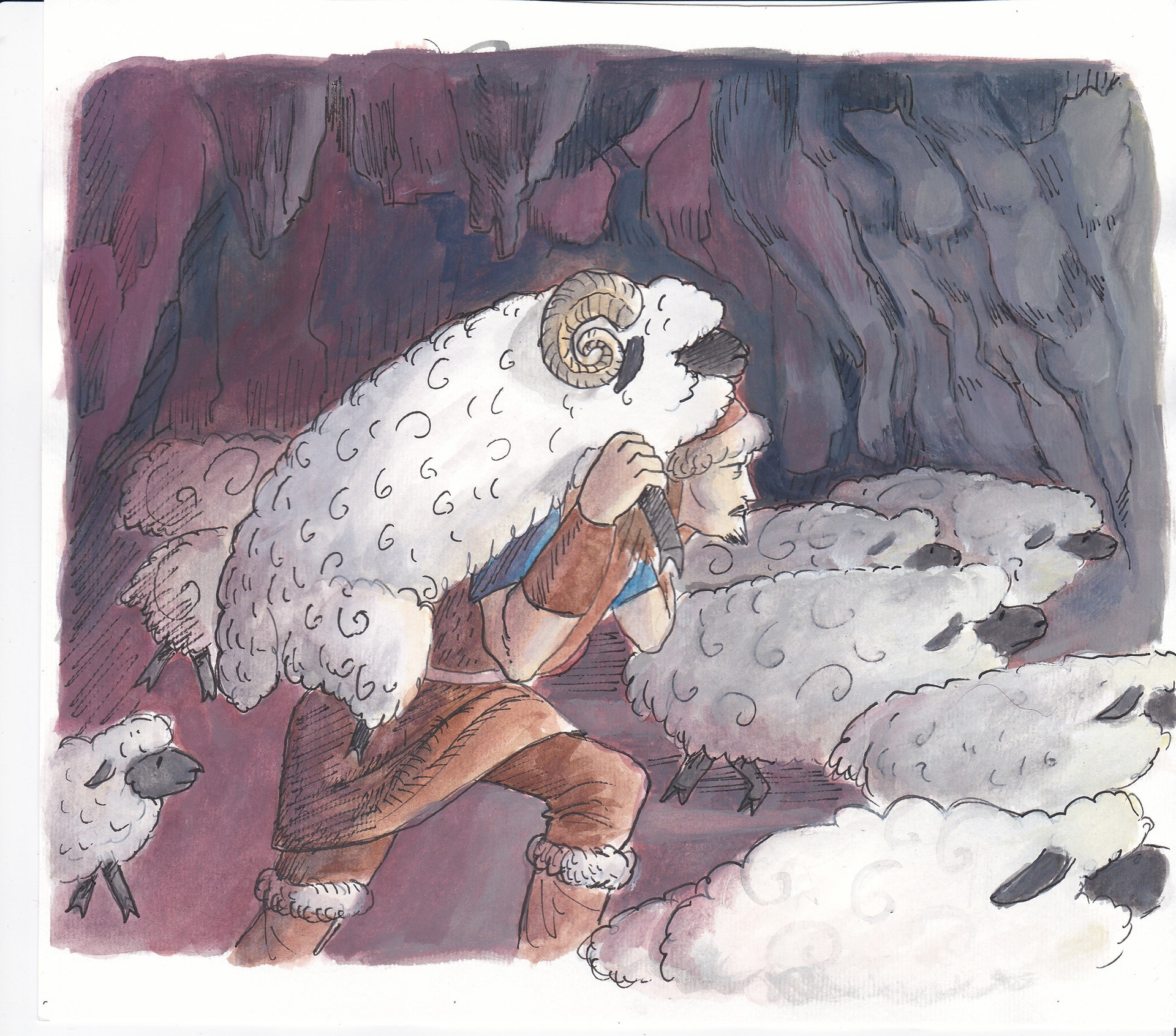 'Basat and Tepegoz(Basat and Google-eye)' watercolour and ink on paper, personal project