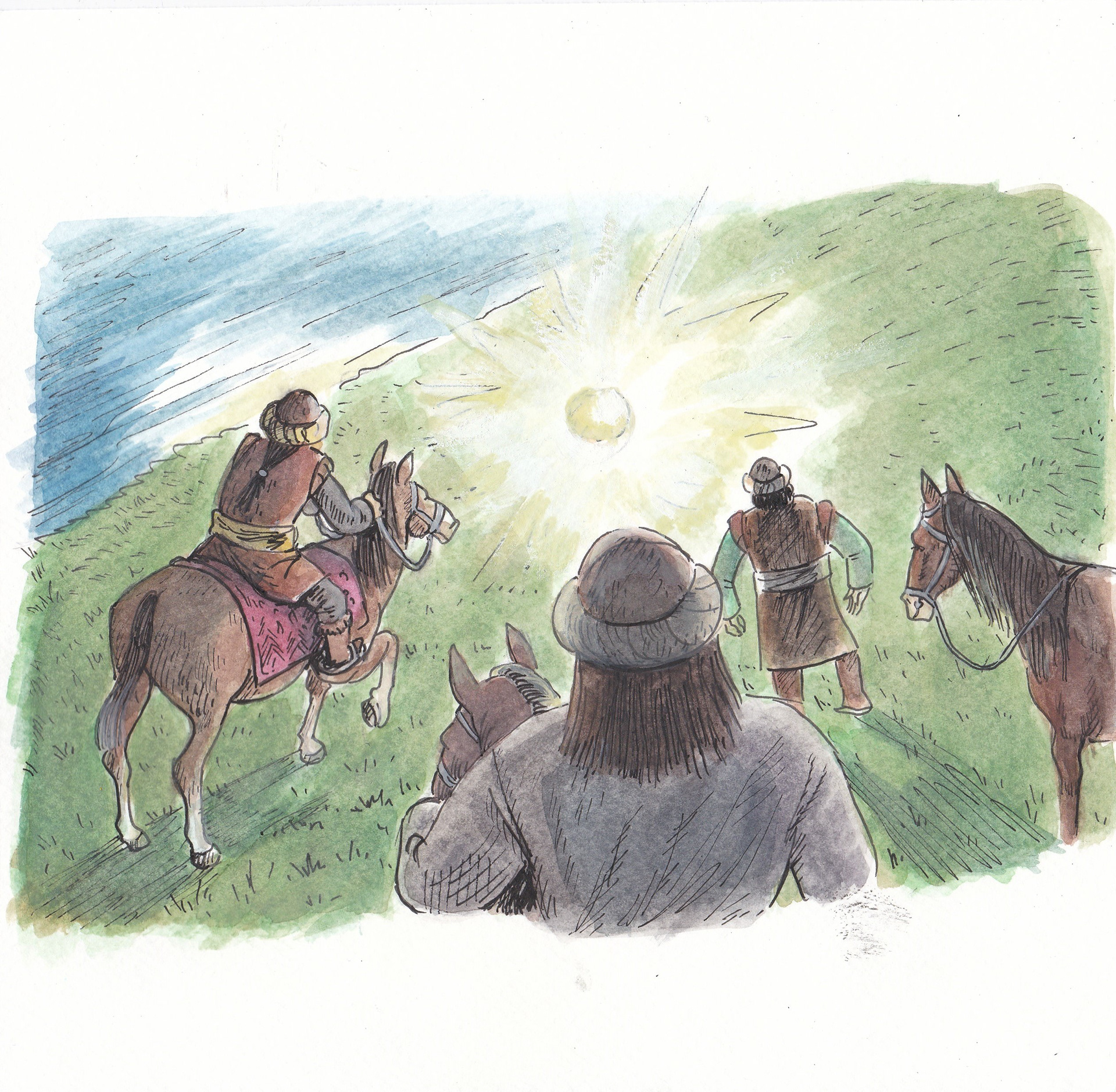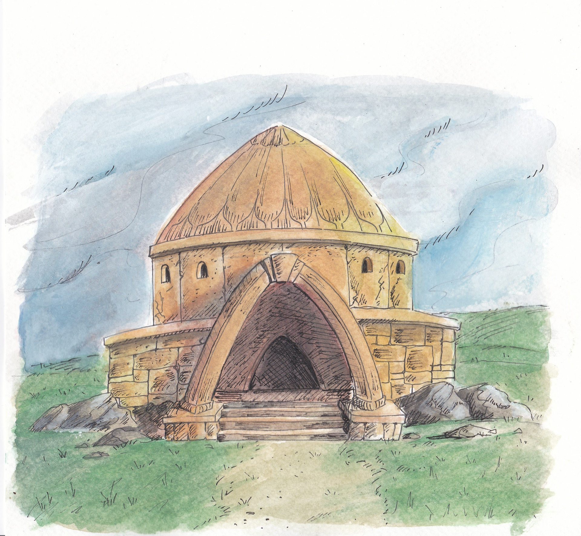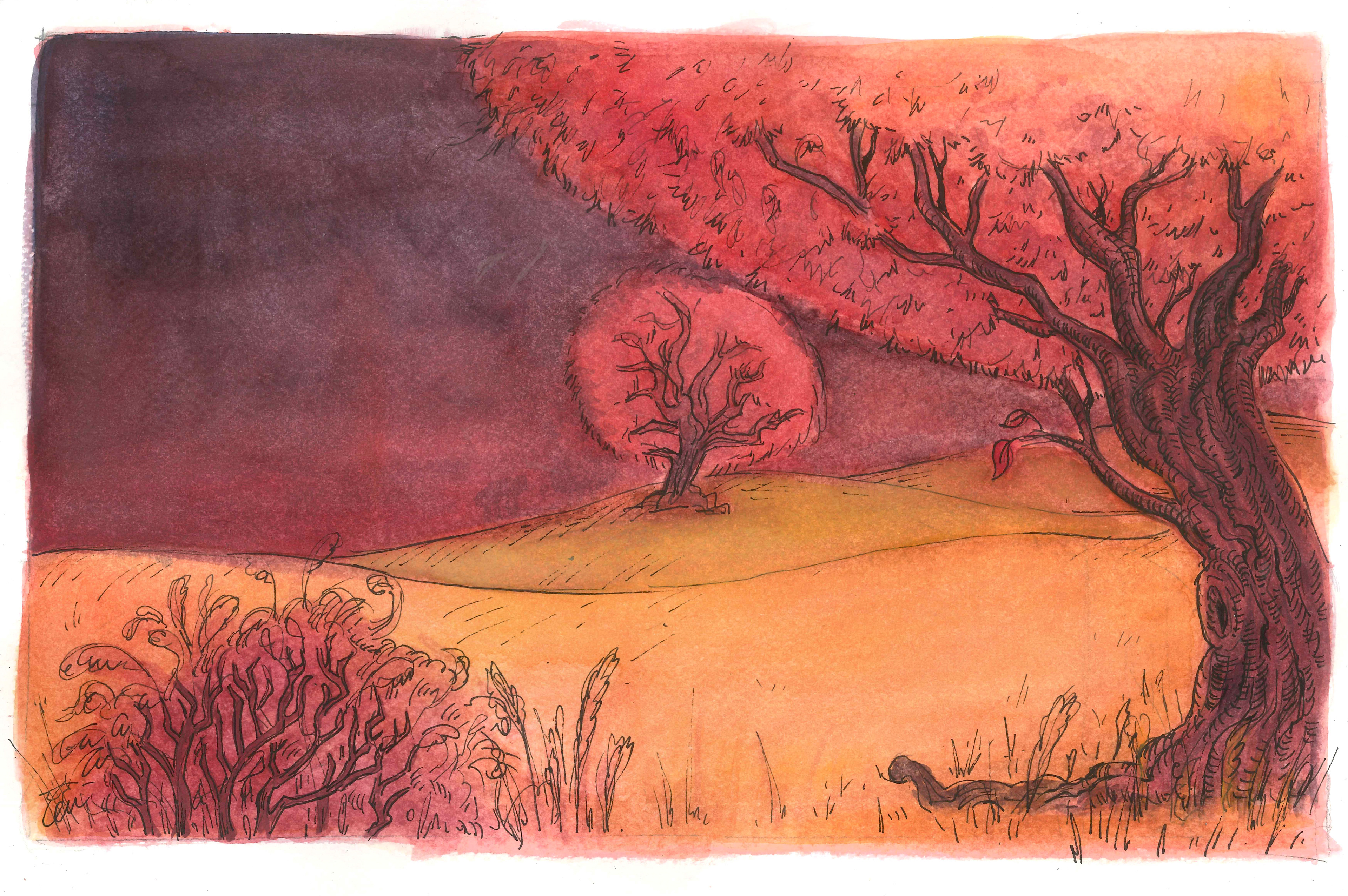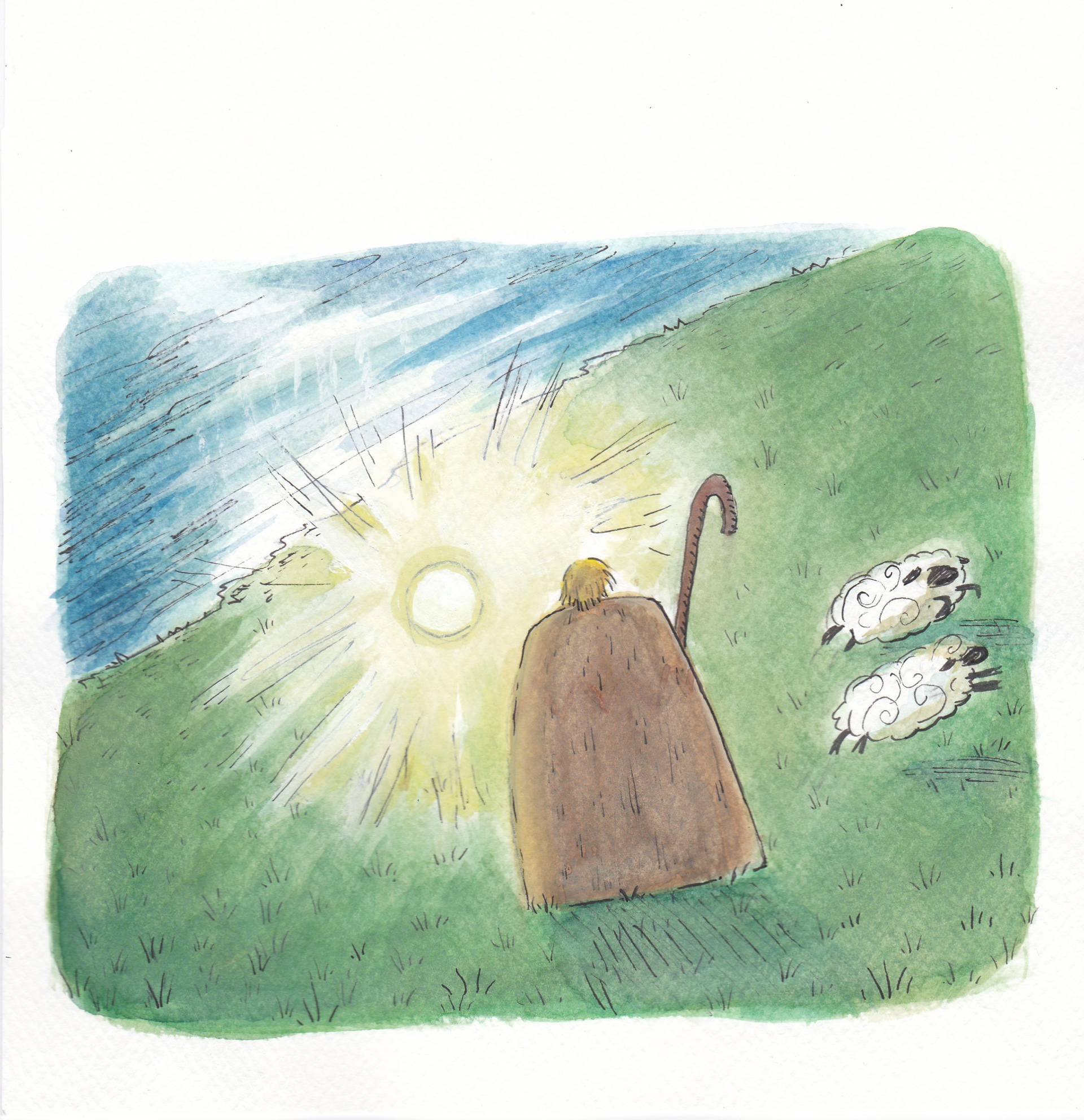 'Basat and Tepegoz(Basat and Google-eye)' watercolour and ink on paper, personal project