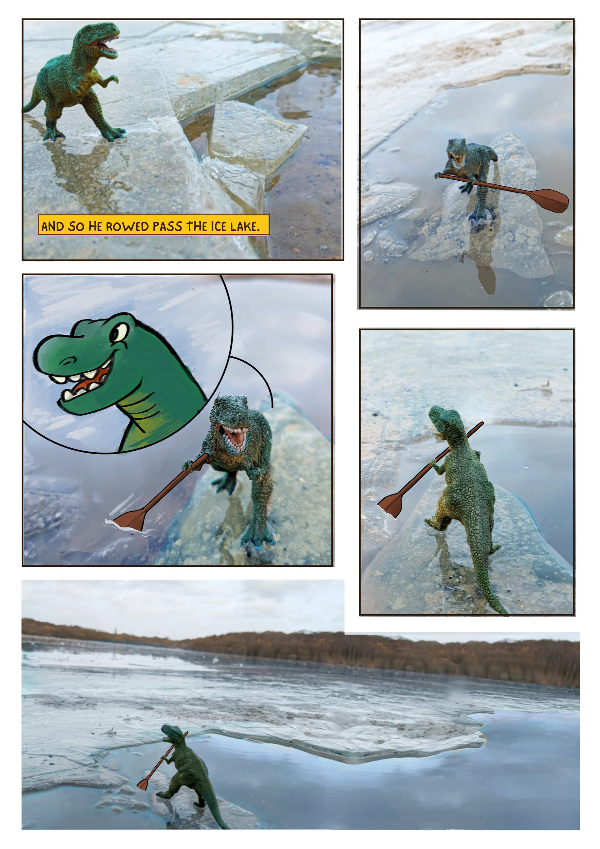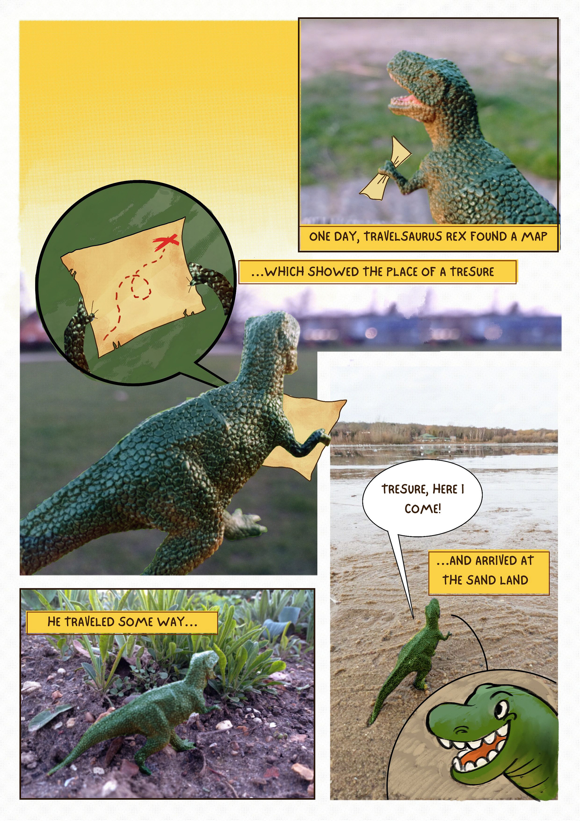 telling the story of a traveller t-rex (travel-taurus Rex)